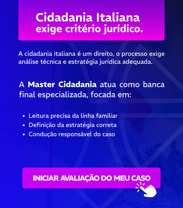 Para quem prefere delegar toda a fase preparatória. A Master realiza a montagem completa da documentação, o protocolo do processo e a condução integral da etapa italiana.